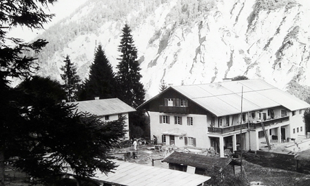 Im Januar 2012 meldet sich Frau Veronika Fries bei mir. Und sie erzählt von ihren Erlebnissen auf dem Reintalerhof: Frau Fries, eine geborene Waldkirchnerin, kam mit 17 Jahren nach der Währungsreform auf den Reintalerhof, der 1949 wieder der Gewerkschaft gehörte. Verwalter waren das Ehepaar Riedl aus dem Bayerischen Wald. In dieser Zeit firmierte der Reintalerhof als "Alpenhotel - H. Riedl". Das Jugendheim, oberhalb des Reintalerhofs wurde mit Schulklassen belegt. Frau Fries erinnert sich noch gut an zwei Klassen, die aus Offenbach kamen. Oberhalb des Mulistalls war das sogenannte „Durchgangslager“, zwei einfache Hütten mit Matratzenlagern, in der die Bergsteiger, die auf dem Weg zur Zugspitze waren, übernachten konnten. Während der Zeit von Frau Fries auf dem Reintalerhof, von 1949 bis Ende 1951, wurde die gesamte Versorgung mit drei Mulis durchgeführt, für die es einen eigenen Mulistall gab. Der Weg zum Reintalerhof war zu dieser Zeit nur für Militärjeeps zu befahren. Am Abend wurde viel Unterhaltung geboten, vor allem selbst erdachte und eingeübte Sketsche und Theaterstücke. Und an eine Begebenheit erinnert sich Frau Fries besonders lebhaft: Ein Gast, der ohne Gepäck, ja sogar ohne Zahnbürste auf dem Hof ankam und viele Wochen blieb. |