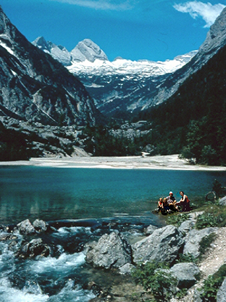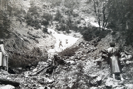 Von 1952 bis 1955 waren Josef und Monika Schels als Arbeiter auf dem Reintaler Hof tätig. 1957 sind sie in die USA ausgewandert und lebten bis 1995 in Chicago, anschließend in Wisconsin. Monika Schels, geb. Rodler, stammt aus Kanau-Waldkirchen im Bayerischen Wald, Josef Schels aus Regensburg. Kennengelernt haben sich die beiden dann auf dem Reintaler Hof, wo Monika als Zimmermädchen und Josef als Hausmeister tätig waren. Im Jahr 1955 heirateten sie. Der Reintaler Hof hat damit auch zu (mindestens) einer Ehe beigetragen. Monika Schels berichtet, dass sie damals, Anfang der fünfziger Jahre, jeden Tag zur Arbeit auf den Reintaler Hof hochgegangen sind. Lebensmittel und aller weiterer Bedarf wurde täglich mit den Mulis transportiert. Und die Touristen wurden täglich abgeholt. |