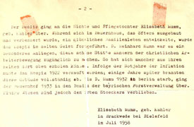 Im Juli 1958 verfasst Elisabeth Mumm, geb. Kähler, eine kurze Geschichte des Reintalerhofs. |