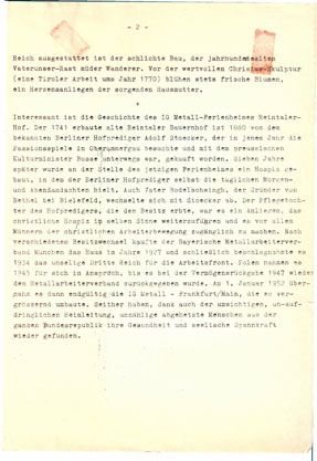 | Die Beschreibung des Reintalerhofs aus dem Werbeprospekt "Kur-, Erholungs- und Ferienheime der Industriegewerkschaft metall für die Bundesrepublik Deutschland" aus den 70iger Jahren. |