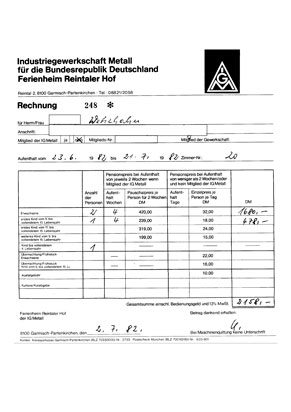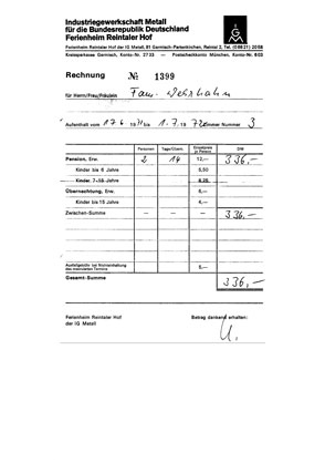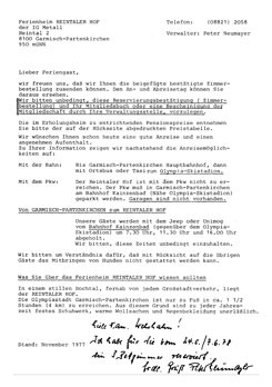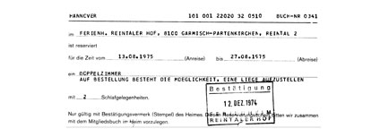 Und hier die Bestätigung für eine Reservierung 1978, unterschrieben von Peter Neumayer. |