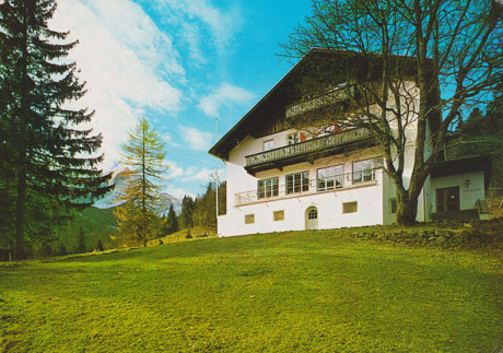 | Hier nochmals die Nordseite des Reintalerhofs. Jetzt ist der Anbau, der Fernsehraum, schon errichtet. Links hinter dem Eingang scheint ein Prinz I oder II zustehen. |