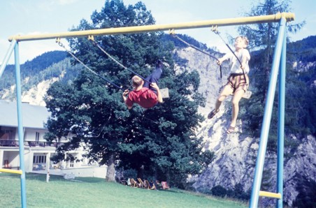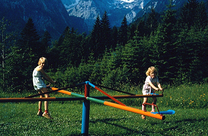 Den Kindern der Familie Wehrhahn gefällt es ausnehmend gut, auf dem kleinen Karussell die Bergkulisse kreiseln zu lassen. |