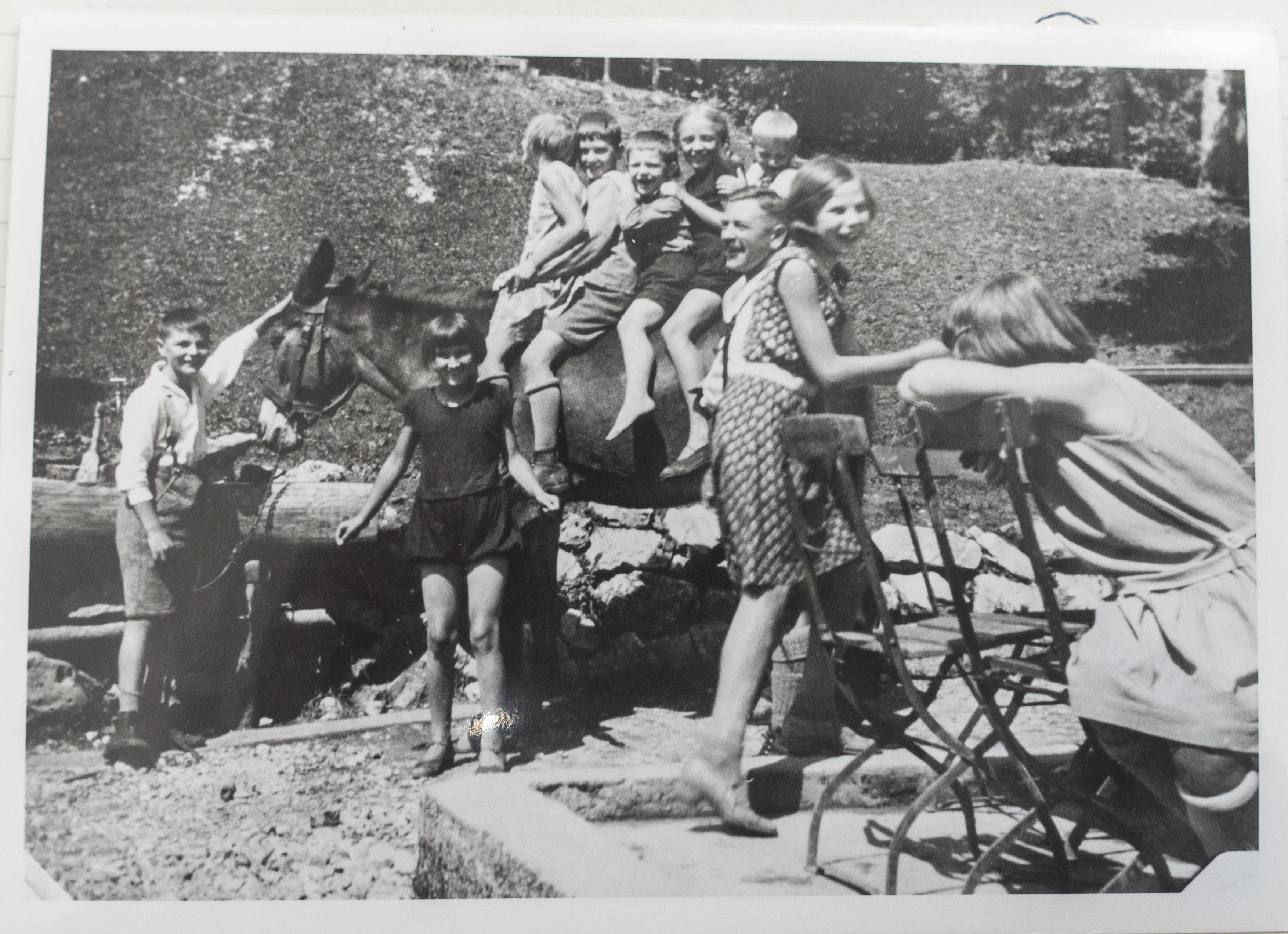 1932 machen die Eltern von Walter Weygold Weihnachtsferien auf dem Reintalerhof. Die Gäste sonnen sich ...